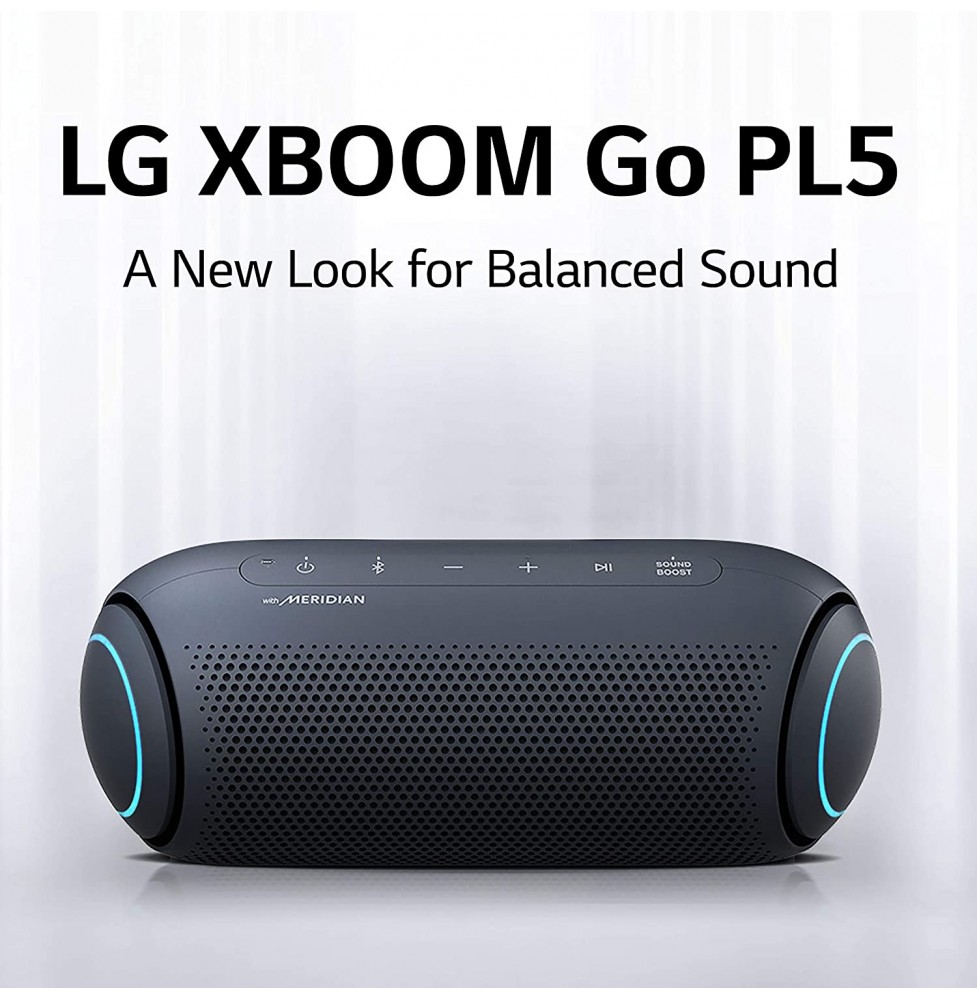 LG's PL7, XBOOM Go portable Bluetooth speaker offers long-lasting rechargeable battery, for up to 18 hours of playback. The splash-resistant PL5 with Meridian Audio technology for richer bass and clearer vocals adds LED lights add club-style excitement. Battery life will vary with use, settings, and environmental conditions.